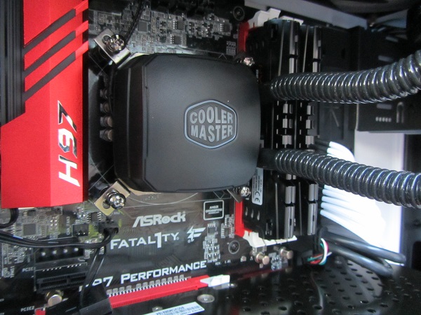 Wel is het misschien even interessant om stil te staan bij het inbouwen van waterkoeling. Dit doe ik zoals eerder vermeldt met de Nepton 240M. Het bovenste compartiment verleent zich prima om een 240mm of 280mm waterkoeling te monteren, in mijn geval een 240mm radiator. Zodra het moederbord is geïnstalleerd kan je met gemak nog een radiator monteren in de bovenkant. Ik heb meegeleverde schroefjes gebruikt uit het accessoiresdoosje. Ik heb deze vooraf wel goed gecontroleerd, zodat deze niet de vinnen van de radiator kapot duwen wanneer de schroefjes op hun plek zitten. Dit zou niet alleen zonde zijn van je radiator, maar kan ook een lek veroorzaken. Het is altijd schatten per behuizing wat dit doet, een factor dat meespeelt, is de dikte van de panelen. Heb je een behuizing met vrij dunne panelen, dan kan ik je aanraden om eerst één schroefje te monteren. Je kunt dan zijwaarts meekijken of het schroefje de vinnen aanraakt. Je kunt de schroef ook voorzicht aandraaien en weer verwijderen, op die manier kun je ook zien of de vinnen netjes blijven. Uiteraard is het altijd aangeraden om de meegeleverde schroefjes te gebruiken van je waterkoeling.