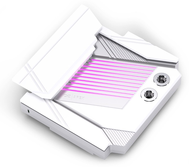 Net als de Apex 1 CPU-koeler maken de Apex Monoblocks gebruik van een offset koelplaat die de koelvloeistof direct naar het thermische hotspot van de AM5-processor leidt. Gecombineerd met de bewezen Cross-Slot-structuur en het 3D Jetplate 2.0-ontwerp genereert dit hoge waterdruk voor bijzonder efficiënte warmteafvoer. De monoblocks zijn ontwikkeld voor veeleisende custom waterkoelsystemen die zowel hoge koelprestaties als een verzorgde uitstraling vereisen. ARGB-verlichting versterkt de visuele presentatie in moderne pc-builds.