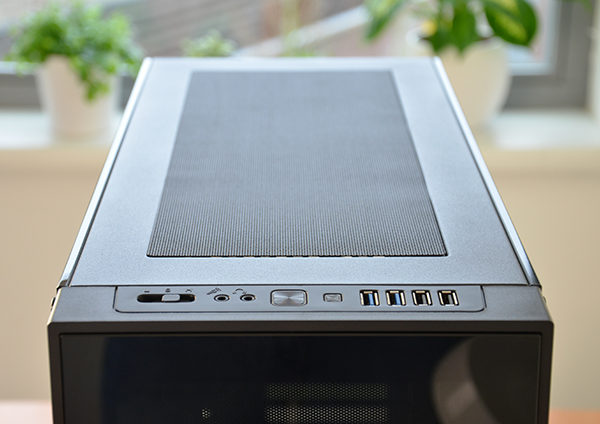 De achterzijde is wellicht wat spartaans wat we gewend zijn van de kleinere fabrieken, maar in de praktijk merk je daar weinig van. Waar het telt, bijvoorbeeld de bovenzijde, doet Anidees het wat presentatie betreft goed: magnetische top cover is net wat steviger dan gebruikelijk waardoor het niet als een lullig vodje op het rooster voelt. Frontpanel is ook netjes compleet met vier USB poorten en de fan-controller met ‘uit’ optie. Een puntje van kritiek: Wij kregen het voor elkaar de power-knop binnen 2 minuten te ver door te drukken wat we moesten fixen met een schroevendraaier. Daarna nog flink geduwd en getrokken om zeker te zijn dat hij goed zit zonder gevolgen, maar wel iets waar Anidees even naar moet kijken.