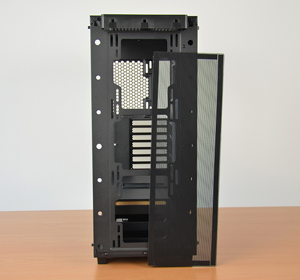 Het gebrek aan bays voorin laat je GPU’s tot 410mm plaatsen, geen beperking dus, en houdt ook de optie vrij voor 240mm, 280mm of zelfs 360mm radiatoren zowel voor- als bovenin. Luchtkoeling tot 175mm past ook, dus feitelijk ruimte zat voor de moderne game- of show pc.