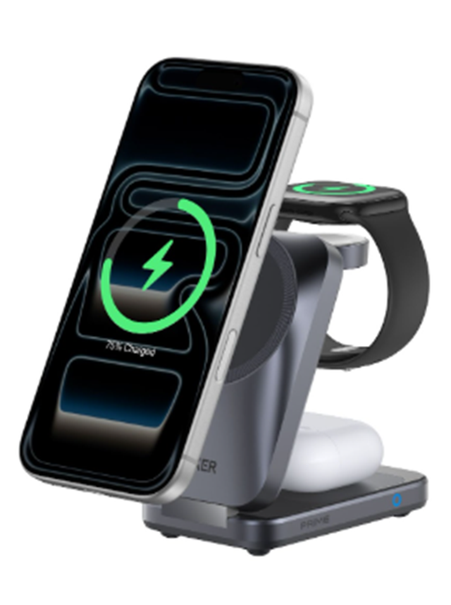 Daarnaast introduceert het merk het ANKER Prime Wireless Charging Station, een opvouwbare 3-in-1-oplossing met Qi 2.2-ondersteuning en een laadvermogen tot 25 watt. Dankzij AirCool-technologie met een geluidsniveau van 19 decibel blijven apparaten onder 37 graden Celsius voor optimale prestaties. Het laadstation is vanaf april beschikbaar voor €129,99.