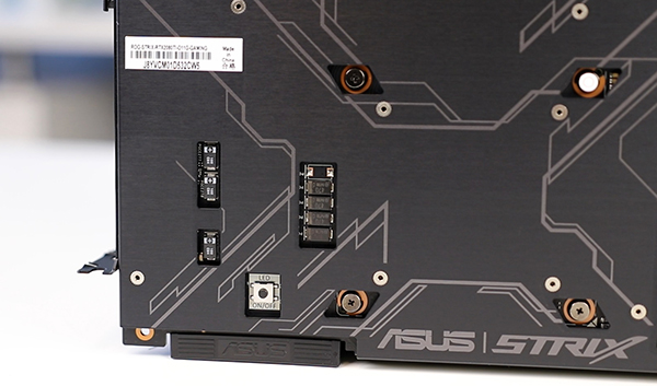 De backplate is komt best herkenbaar voor, hooguit wat kleine tweaks daar. Wel interessant is de toevoeging van een LED on/off knop, waar liefhebbers van RGB-off nu zonder software alle ledjes uit kunnen zetten. Wil je wel LED, dan zit er RGB in het logo in de backplate, in de republic of gamers branding op de zijkant, en in de lijntjes rond de fan.