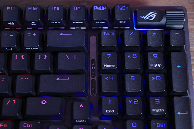 Waar merken in het verleden rap naar Cherry MX switches grepen zonder verder over de switches na te denken is dat in 2023 wel anders. Zo ook ASUS met dit bord. Zo zien we hier hun eigen ROG flavoured mechanische switches, maar zorgen ze ook voor goede stabilizers, zijn ze “lubed”, en is het hele bord voorzien van geluidsdemping. Ook zijn de keycaps doubleshot PBT.