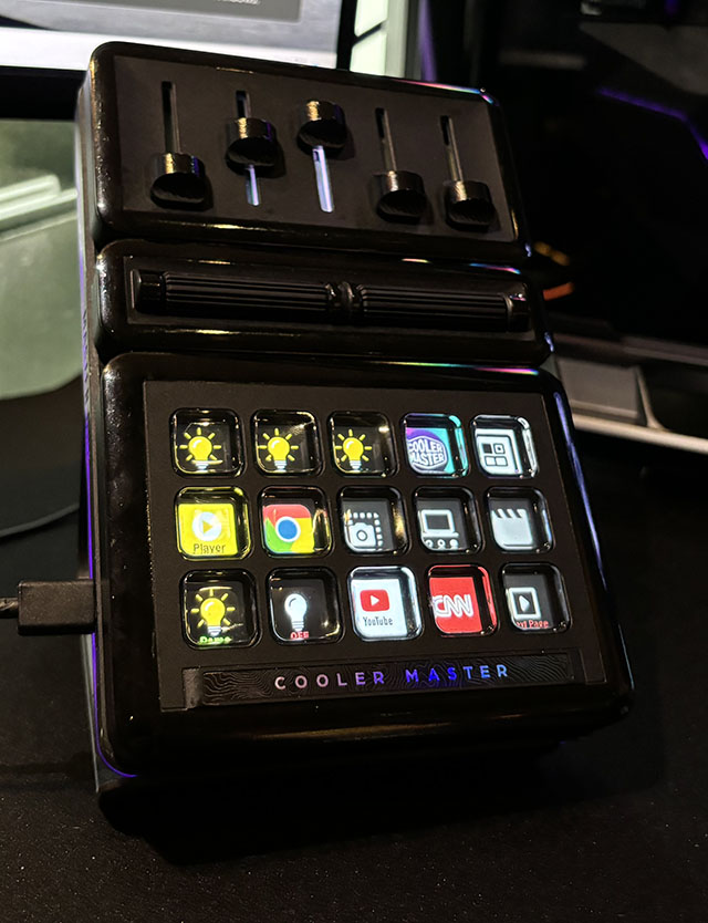 Cooler Master kondigt op CES 2024 hun eigen variatie van de Stream Deck aan, genaamd de Master Hub, een super handig en zelf aanpasbaar deck die ook nog eens makkelijk aan te passen is. Dit deck wordt geleverd met 3 standaard opzetstukken, het typische 3 bij 5 LCD knoppen paneel, 2 rol knoppen en 5 volume faders, ook heeft Cooler Master twee andere opties die los verkrijgbaar zijn ontworpen, dit zijn 3 draaiknoppen die verlicht zijn met aanpasbare RGB en als laatste een grote draaiknop met een IPS scherm die van alles kan monitoren.