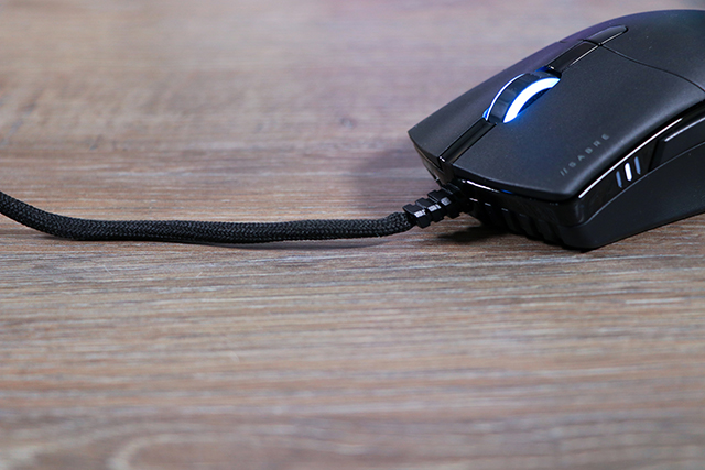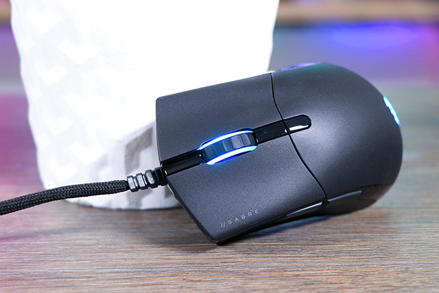 De vorm is ook meer palm grip dan fingertip, iets waar veel mensen nu eenmaal om vragen. Wel opvallend zijn de relatief gladde zijkanten, die gecombineerd met een rechterkant die wat naar binnen trekt in plaats van naar buiten uitlopen het heel actief liften van de Sabre wat ongemakkelijk aan doen voelen. De combinatie formaat en die zijkanten maakt dan ook duidelijk dat deze muis zich iets meer op de gamers met een hogere sensitivity richt dan de ultra low sense gamers die hun muis constant optillen. Vorm blijft persoonlijk, maar de doelgroep lijkt mij hier volledig duidelijk.