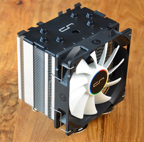 Ook de koeler zelf maakt een uitstekende indruk. We zien een keurige kwaliteit van de koelvinnen, mooie details met zwart staal en wit plastic. In het koelblok zien we de gaten voor eenvoudige montage later. Het geheel is allemaal niet zo gek complex, maar het maakt een unieke en mooie indruk.
