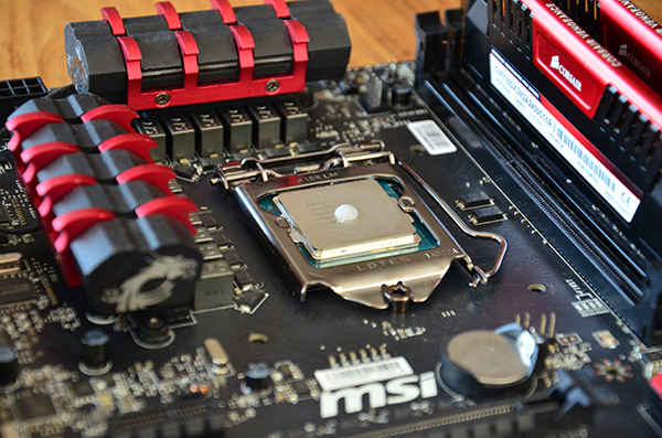 Omdat de C7 volledig binnen de keep out zone valt is compatibiliteit geen issue, al scheelt het niet veel met de flinke VRM koeling op de MSI Z97 Gaming 9. Aan de andere kant zien we dat het werkgeheugen ook geen problemen geeft, en met grafische kaarten uiteraard ook niet.