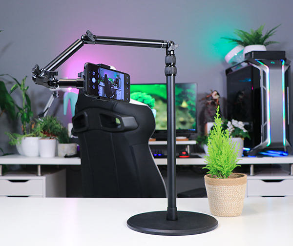 Hier bereiken we natuurlijk ook een beetje het punt waarop je je afvraagt “wat moet ik hiermee”. Je telefoon ondersteboven hangen wellicht, of je microfoon dichter bij je gezicht brengen, of gewoon een accessoire buiten het beeld om boven je hoofd krijgen, bijvoorbeeld voor wat extra licht op je greenscreen of bovenop je hoofd. Of gewoon je hele DSLR ondersteboven hangen voor een installatievideo, om je kook kunsten op te nemen of wat je dan ook kan bedenken.
