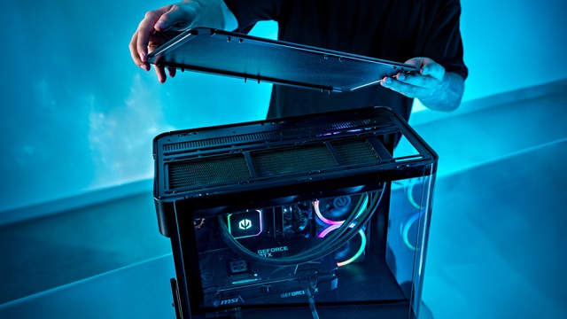 Het ontwerp is gericht op zowel esthetiek als gebruiksgemak. Het gebogen glazen frontpaneel biedt een panoramisch zicht op de interne componenten, terwijl de zijwaarts geplaatste I/O-poorten zorgen voor eenvoudige toegang, ongeacht de positionering van de pc. Daarnaast beschikt de behuizing over een klassiek intern ontwerp met een onder geplaatste voeding, wat bijdraagt aan een opgeruimde en efficiënte indeling.