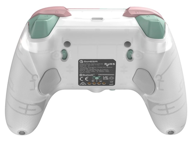 Technisch bouwt de T7 Pro Sugar Whirl voort op de beproefde GameSir-hardware. GameSir Mag-Res TMR-sticks elimineren stick drift en bieden precisiecontrole, terwijl Hall Effect analoge triggers soepele, lineaire invoer leveren. Tweestaps triggerstops maken kortere indrukafstand mogelijk voor snellere reacties. Vier rummelmotoren leveren genuanceerde haptische terugkoppeling, terwijl lasergeëtste textuurgrepen voor een veilige grip zorgen. Een ingebouwde 3,5 mm-audioaansluiting maakt gebruik van een bedrade headset mogelijk.