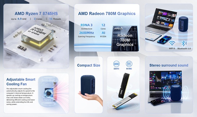 GTBox heeft een opvallende nieuwe mini-pc aangekondigd die zich onderscheidt van de vele AMD-aangedreven modellen die momenteel op de markt verschijnen. De GTBox T1 komt in de vorm van een marineblauwe Bluetooth-speaker, maar schuilt in werkelijkheid een krachtige compacte computer. Met zijn ingebouwde stereo luidsprekers van 5 watt biedt het systeem niet alleen rekenkracht, maar ook geluidsweergave die volgens GTBox zorgt voor een brede geluidsweergave en nauwkeurige positionering, al ligt de nadruk vooral op functionaliteit en design.