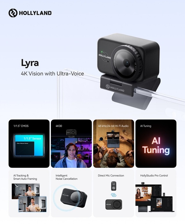 Met zijn combinatie van professionele beeldkwaliteit, geavanceerde audio en gebruiksgemak maakt de Hollyland Lyra 4K UHD Webcam hoogwaardige contentproductie toegankelijk voor iedereen. De webcam is wereldwijd verkrijgbaar vanaf 11 november voor een adviesprijs vanaf 149 dollar.