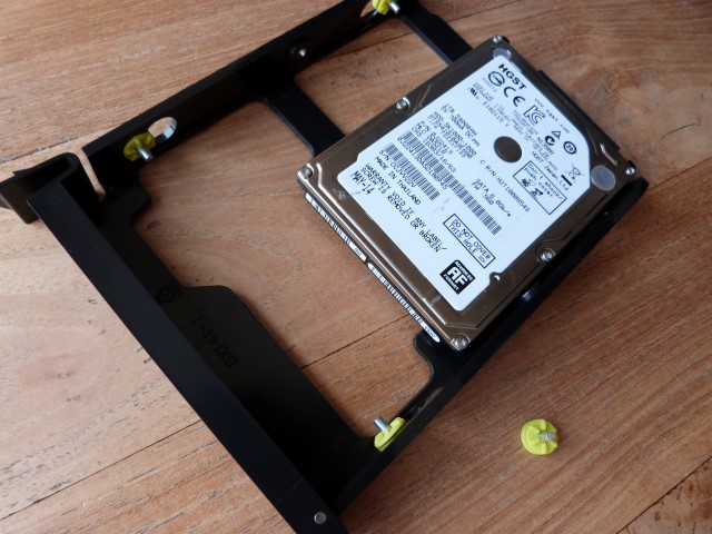 Na deze geplaatst te hebben verder gegaan met de harde schijven, één ssd en één 2.5″ hdd, en deze geplaatst op beide plekken. De brackets aan de voorkant zijn een mooie plaats om je opslag te showen, helaas is het bij zowel de ssd en de hdd zo dat de stickers naar buiten gericht zijn en in het zicht hangen. Dit is absoluut niet mooi voor een strakke build en zou je op kunnen lossen door middel van een cover of een sticker. Ik heb ze maar in de bays bovenin geplaatst waar ze niet zichtbaar zijn. Hierin schroef je ze vast waarna je het bracket in de houder schuift en de sata connectoren direct aangesloten zijn.