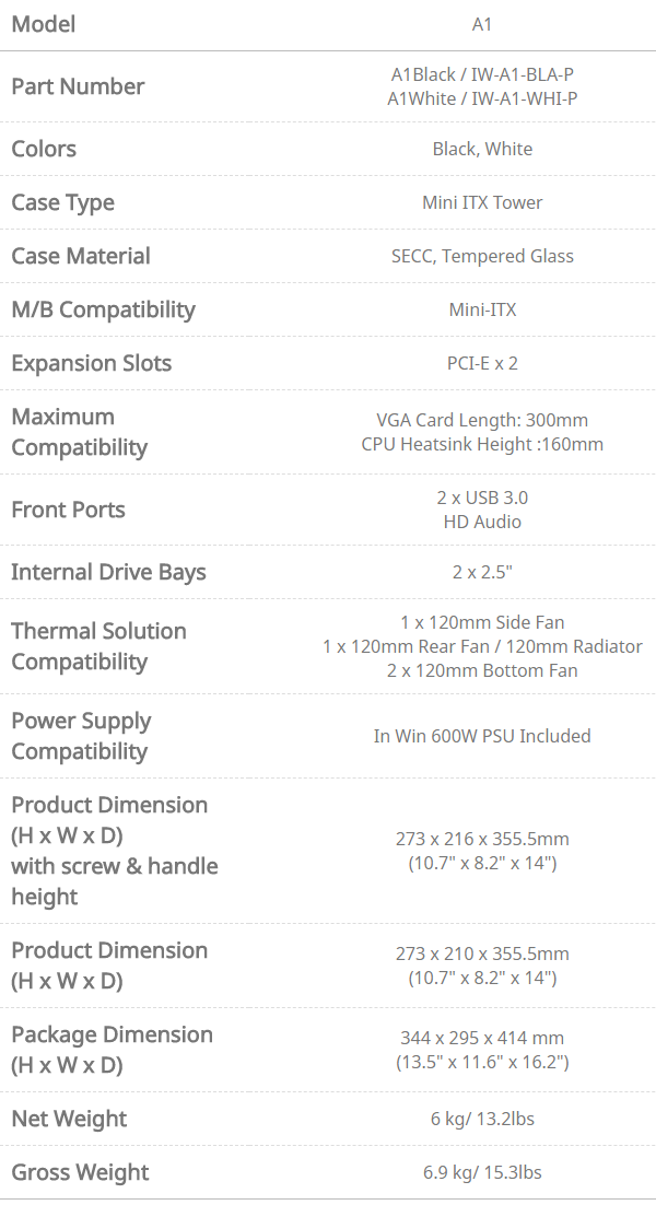 Overigens is de logische vraag: waarom geen stock ventilatoren van In Win? Iets wat ze vaker doen overigens. Twee primaire argumenten: 1) liefhebbers kiezen toch liever hun eigen fans, en ITX cases als dit zijn puur voor liefhebbers, en 2) In Win heeft met de Polaris fans leuke dingen in handen, maar hun standaard assortiment op gebied van stock fans is niet denderend, of niet denderend genoeg om niet af te doen aan het plaatje wat de A1 neerzet. Begrijpelijke keuzes.