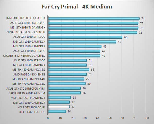 Specifiek voor low profile systemen is er nog één belangrijk element om niet te vergeten in het voordeel van dit model, en dat is dat er (naar mijn weten) geen low profile alternatieven zijn boven de GTX 1050 Ti, noch alternatieven van AMD. Gezien deze GTX 1050 de GTX 750 Ti declasseert maakt low profile varianten van de 1050 of 1050 Ti zoals deze KFA2 feitelijk een vanzelfsprekende keuze in dat niche segment van kleine cases met een gaming wens, en wellicht interessant voor zij met een iets hoger budget: van de GTX 1050 Ti is ook een KFA2 OC LP model verkrijgbaar. De beperkingen van de prestaties van de gebruikte Nvidia chips moeten duidelijk zijn, maar er valt veelal toch prima te gamen met een kaart als dit in je niche low profile behuizing, en dat met een bescheiden warmte en geluidproductie; leuk speelgoed dus.