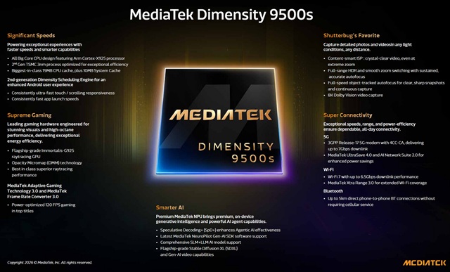MediaTek heeft de nieuwe Dimensity 9500s en Dimensity 8500 aangekondigd, twee krachtige toevoegingen aan de Dimensity-familie die zijn ontworpen om nieuwe impulsen te geven aan het flagship en premium smartphone-segment. Beide chipsets richten zich op hoge prestaties, energie-efficiëntie, geavanceerde AI-mogelijkheden, beeldverwerking, gaming en draadloze connectiviteit, waarmee fabrikanten in staat worden gesteld om geavanceerde mobiele ervaringen toegankelijker te maken.