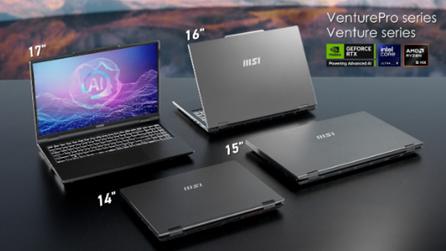 Daarnaast introduceert MSI de Venture & VenturePro-series, speciaal ontwikkeld voor zakelijke gebruikers. Uitgerust met de nieuwste Intel Core Ultra 200H of AMD Ryzen AI 300-processoren en NVIDIA GeForce RTX-GPU’s, bieden deze modellen een optimale balans tussen kracht en efficiëntie. Met een OLED-touchscreen, uitbreidbaar geheugen en opslag, en een robuuste 90Wh-batterij met Battery Boost-technologie zijn deze laptops perfect voor professionals die onderweg werken. De geavanceerde AI Engine optimaliseert automatisch de prestaties, beeldkwaliteit en audio-instellingen voor een verbeterde workflow.
