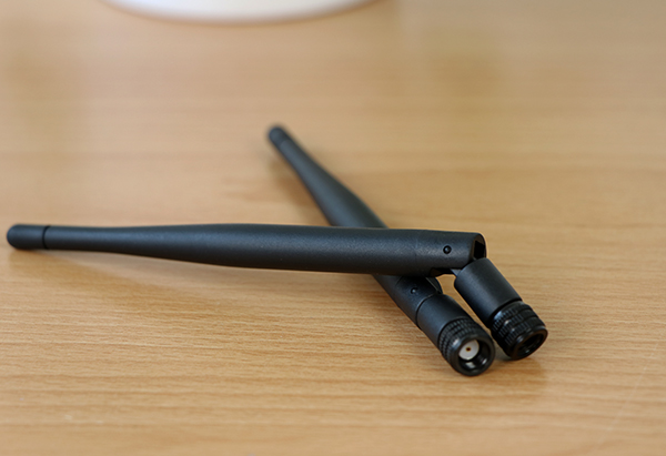 Van de AC uitvoering hadden we uiteraard WiFi verwacht, en die komt in de vorm van een losse insteekkaart met twee antennes. Praktisch is het wel, zeker als je hem elders wil inzetten, maar het beperkt je vrijheid wat antenneplaatsing wel wat.
