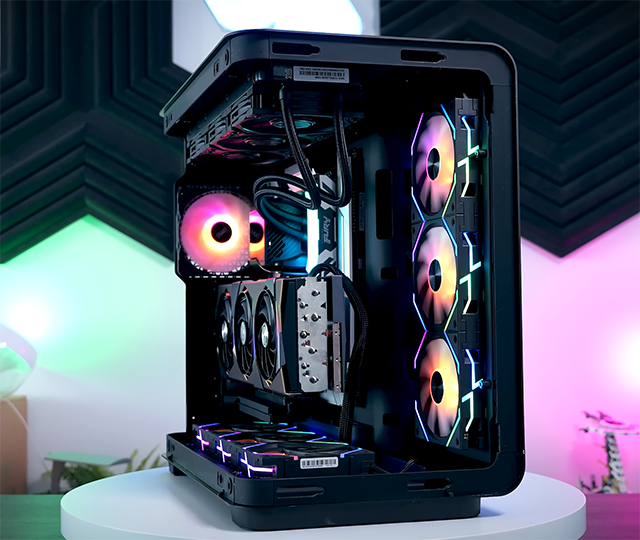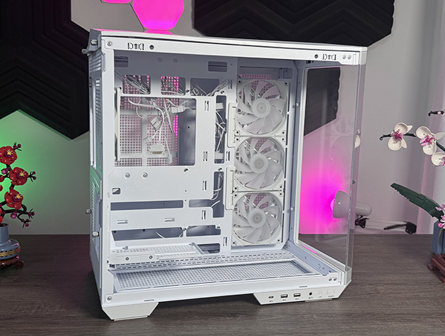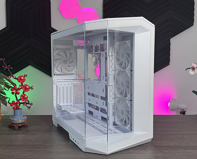 En de extra, technisch gezien niet noodzakelijke features die ze hebben toegevoegd zijn wel dingen die je kan waarderen. Denk aan een vertikale GPU optie die je makkelijk kan draaien, fan en RGB hubs, en een touchscreen op de voorkant die je makkelijk toegang geeft tot informatie of bijvoorbeeld fan control.