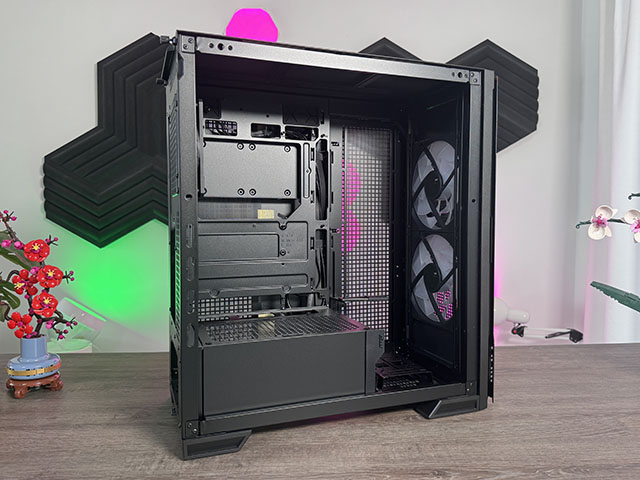Maar ook 140 euro voor de versie met fans lijkt echt niet gek gezien wat hier op tafel staat. Een degelijke, net afgewerkte behuizing. Fishtank, dus met glas aan de voorzijde, en dual-chamber, met de voeding dus achter het moederbord. Met als bijkomend voordeel: daardoor extra veel ruimte om lekker lui te zijn met kabelmanagement. De 100L en 100R zijn ruim opgezet, dus zelfs met een ATX bord is er genoeg ruimte boven en onder voor kabels, waterkoeling, grote videokaarten, et cetera. In theorie kan je er prima een 10-fan setup van maken, al zijn de meegeleverde 4 er in de praktijk meer dan genoeg voor een dikke build.