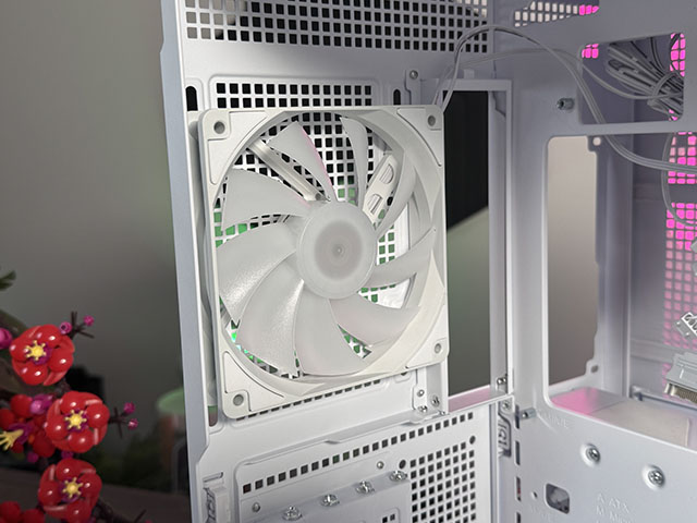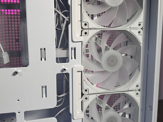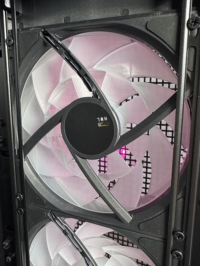 Voor de rest lever je niet veel in. De kwaliteit en afwerking zijn gewoon dik prima voor het grofweg 100 euro prijspun waar deze kast op zit, zeker gezien je ook hier met de R variant meteen vier fans krijgt. Het zijpaneel heeft ook ventilatieruimte voor die fans, waarmee meer fans ook niet nodig zijn. En ook hier zien we netjes een fan en een RGB hub meegeleverd worden.