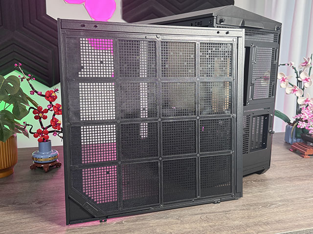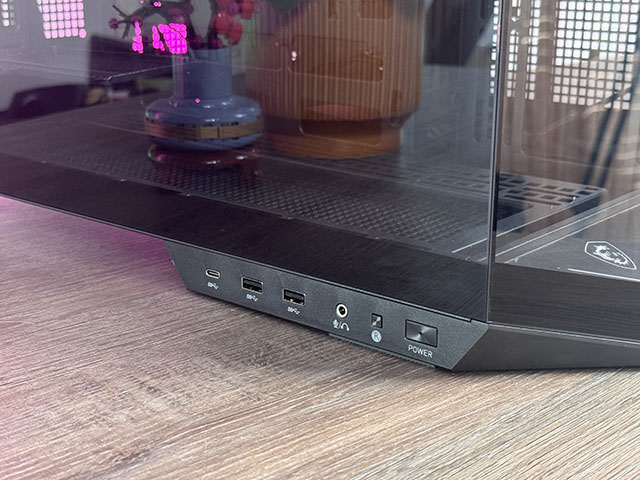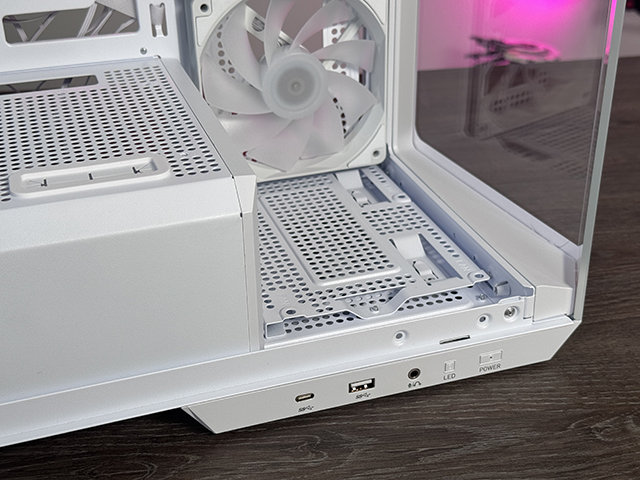 Wat mij ook aanstaat is de locatie van het front IO, of .. eigenlijk bottom-side IO in dit geval. Dat is niet ideaal voor een kast die op de vloer staat, maar naast je op tafel is dat in mijn optiek de ideale plek voor incidenteel gebruik. Met genoeg ruimte en volledig afneembare panelen is dit een kinderlijk eenvoudige kast om in te bouwen.