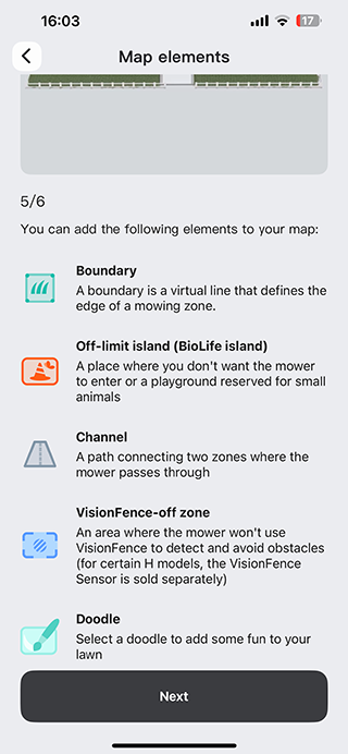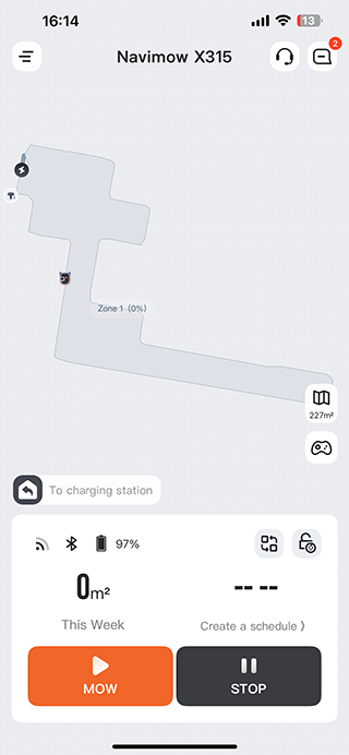 Ik werd direct een stuk blijer van de X315 omdat draad aanleggen niet langer nodig is. Je rijdt de eerste keer handmatig een rondje om de zones aan te maken, je past die eventueel nog een beetje aan met de mapping feature in de app, en that’s it. Geen gedoe met draad, geen moeite om een keer iets een beetje aan te passen, geen vieze handen. Opzetten is gewoon kinderspel. 1-0 Navimow.