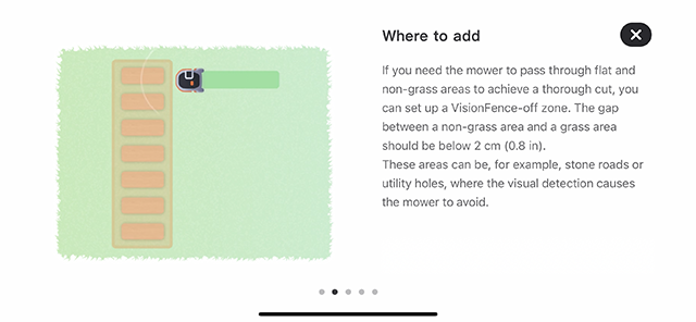 Eenmaal werkend en een map gemaakt kan je nog wat details aanpassen afhankelijk van je tuin. Denk aan stukjes waar hij over heen moet rijden zonder te maaien, stukjes om te negeren, et cetera.