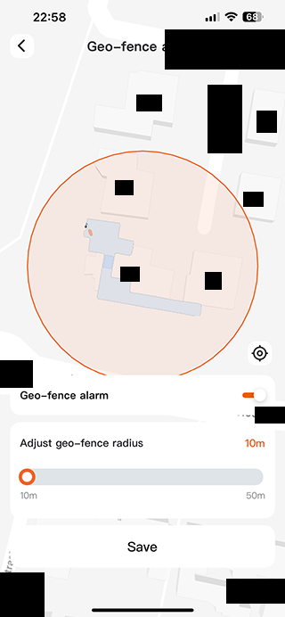De app geeft je de nodige opties, inclusief diefstal beveiliging als hij buiten je terrein komt.