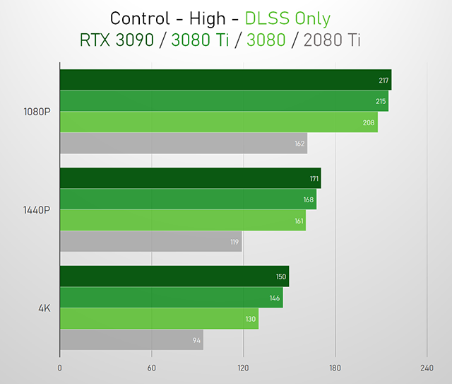 Vergelijken met de RX 6900 XT is wat lastiger. De RTX 3080 Ti is net wat sneller, maar het echte verschil zit natuurlijk in RTX en DLSS. AMD heeft hun DLSS alternatief weliswaar aangekondigd voor later deze maand, maar het zal vermoedelijk even duren voordat we daar echt een brede support voor zien en DLSS heeft inmiddels een aardig rijtje games die het ondersteunen. Ga je met Cyberpunk of Control aan de slag, of de aanstaande Battlefield 6 ongetwijfeld ook, dan maakt DLSS gamen op 4K echt een flinke slag beter. De vraag natuurlijk hoe lang Nvidia die dominatie houdt, maar vooralsnog is hij er.