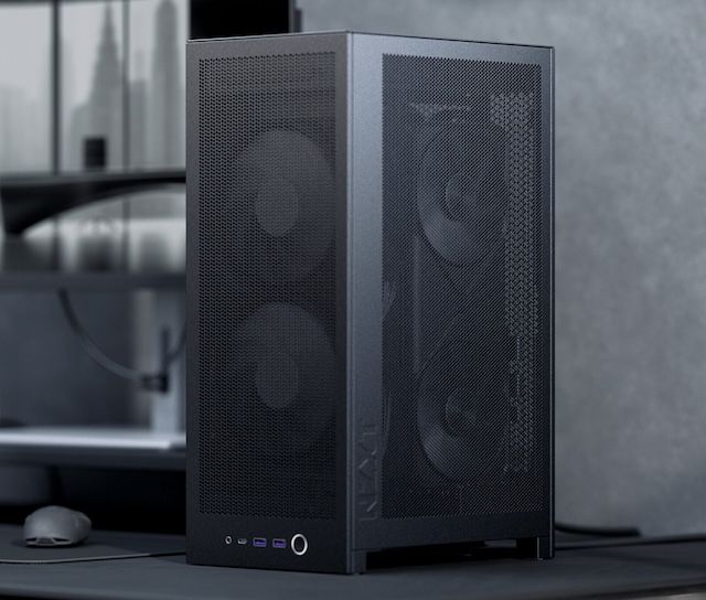 De H2 Flow is een verticale Mini ITX behuizing met een inhoud van 20,7 liter die maximale airflow combineert met een minimale footprint op het bureau. De interne lay out ondersteunt AIO waterkoelers tot 280 millimeter en grafische kaarten tot 331 millimeter, waardoor ook high end GPU configuraties mogelijk zijn. Fijnmazige panelen aan alle zijden optimaliseren de luchtstroom en beperken stofophoping, terwijl geïntegreerde kabelgeleiding met klittenband zorgt voor een opgeruimde en efficiënte build. Een PCIe 5.0 riser cable en twee vooraf geïnstalleerde F120Q ventilatoren zijn standaard inbegrepen.