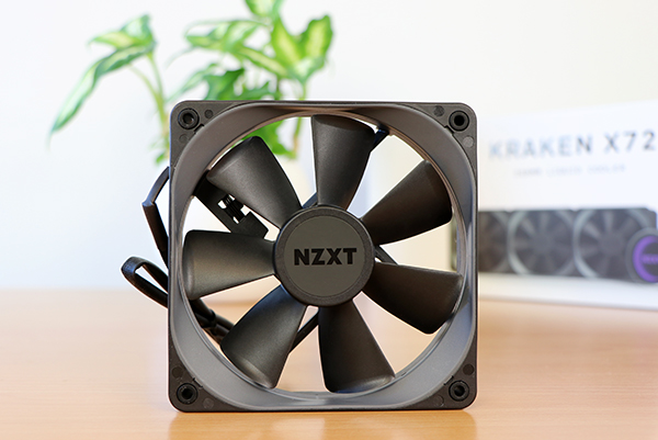 Fans, blijven bij de bekende weg van de X52 hier (240mm). Zwart met een grijs detail, ruim instelbaar met 500-2000RPM (wat je via de software van NZXT doet), en op zich netjes. Wel vragen we ons af waarom ze niet gewoon meteen voor de RGB AER fans gaan; iets duurder, maar die RGB-upgrade voelt toch als iets wat voor de hand ligt.