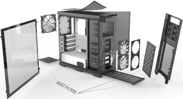 De Phanteks Enthoo Pro serie bestaat uit een aantal vrij grote kasten waarvan de Enthoo Pro TG en Enthoo Pro SE de nieuwste toevoegingen zijn, beiden hebben ze ten opzichte van de oudere modellen een groot glazen zijpaneel en een wat verbeterd ontwerp. Het prijsverschil van ongeveer 20 euro tussen de TG (€110) en de SE (€130) brengt onder andere 2x HALOS RGB fan frames en een wat luxer ‘zwart wit themed’ ontwerp aan de binnenkant.