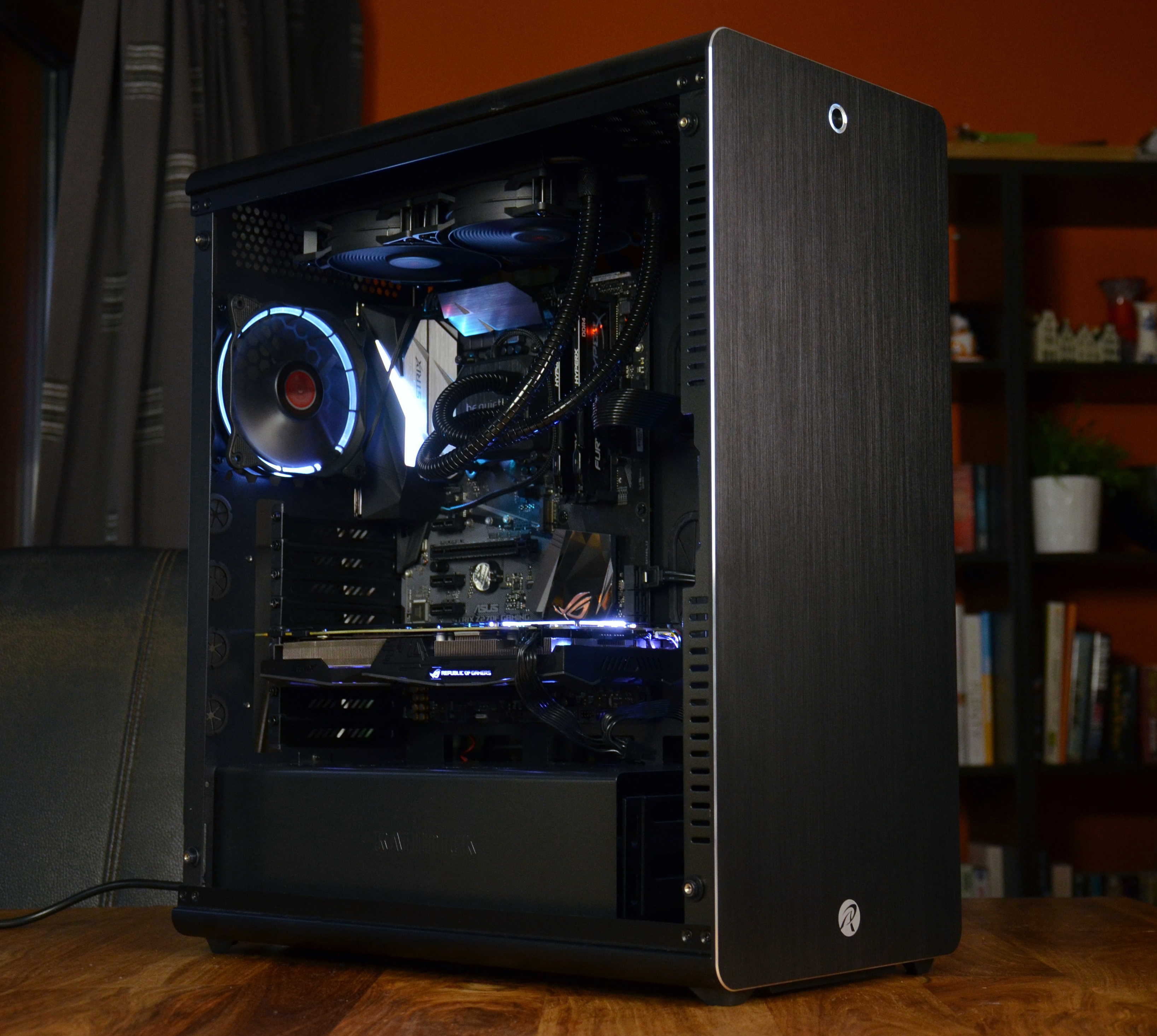 Raijintek liet ons eerder al zien dat ze mooie aluminium cases konden maken, en de Asterion is daarop geen uitzondering. Fijn geborstelde panelen, strak design met weinig afleidende elementen, en de knappe tempered glass panelen sluiten naadloos op het geheel aan. Het zorgt voor een aantrekkelijk totaalplaatje op tafel. Nu is het geen koelkast van een behuizing, maar gewapend met Intel Core i7-7700K en een GTX 1070 zagen we geen praktisch spannende temperaturen om je zorgen over te maken; de Metis had het wat dat betreft iets zwaarder waardoor ze later met een Metis Plus kwamen voor de liefhebber van een high-end build, maar de paar graden die je verliest vanwege de gesloten look kunnen dergelijke degelijke componenten hier wel hebben. Drie stock ventilatoren, met leuke LED feature overigens, vormen dan ook een mooie basis om gangbare single-GPU game systemen koel- en stil te laten functioneren, maar als je gaat SLI’en of Cross-/Tri-Fire hou dan rekening met eventueel wat extra koeling.