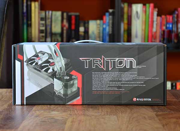 De Raijintek Triton heeft een prima verpakking om te zien en heeft een handsvat. Intern zit het geheel in relatief eenvoudig karton waar we de schroefjes in één gezamenlijk zakje aantreffen. Koelpasta komt helaas niet in een spuitje, maar in een zakje, al zien we wel een spatel. Iets wat we nog niet eerder in een AIO doos aantroffen waren de flesjes met kleurstof.