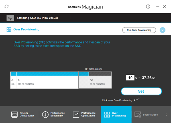 Samsung houdt je handje vast bij wat andere opties zoals het benchmarken van je SSD en biedt wat geautomatiseerde optimisaties, maar onder de streep zijn het vooral handige features voor de leek. Meer bedreven PC users zullen dat ongetwijfeld zelf weten, of geen fabrikant tool nodig hebben om de schijf geheel leeg te maken. Voor veel mensen zal het dus vooral gewoon een firmware update tool zijn en een waarschuwing applicatie in geval dat er problemen gedetecteerd worden. Overprovisioning kan natuurlijk ook geen kwaad, maar ook hier gaat op: de bedreven gebruiker zal met een SSD vermoedelijk al ‘ruim’ ruimte vrij houden.