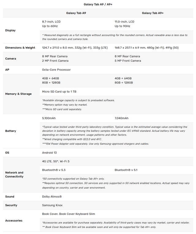 Samsung heeft de Galaxy Tab A9 aangekondigd