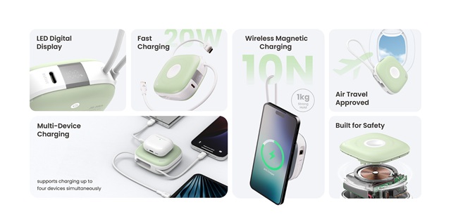 Silicon Power presenteert met trots de MP10, een nieuwe 10.000mAh magnetische wireless powerbank die is ontwikkeld om het opladen van smartphones, earbuds en Apple Watch-apparaten moeiteloos en efficiënt te maken. Het model combineert 20 W PD-snelladen, twee ingebouwde USB-C-kabels en een helder digitaal display in een opvallend compact formaat dat perfect aansluit bij de behoeften van moderne, mobiele gebruikers.