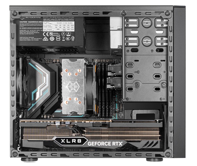 Ondanks het retro-geïnspireerde ontwerp biedt de behuizing ruimte voor grafische kaarten tot 35,4 cm lengte en CPU-koelers tot 15,6 cm hoogte, waardoor ook moderne high-end componenten probleemloos passen. Ventilatiewijze is er een 120 mm inlaatventilator aan de voorzijde en een 120 mm uitlaatventilator aan de achterzijde, met een optionele 120 mm radiatormontage aan de achterkant. SilverStone adviseert voedingen van maximaal 14 cm diepte voor voldoende kabelruimte.