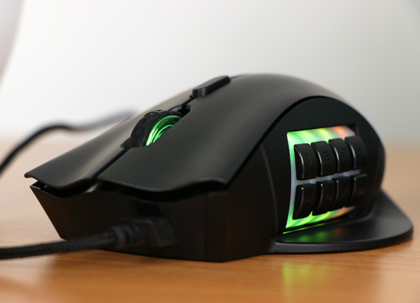 De opvallende duimzone met acht duimknoppen, of vier-tot-acht (dus om te verpatsendat er 12 op zitten is ietwat optimistisch maar niet geheel gelogen) afhankelijk van hoe je ze draait, maakt dit feitelijk direct een MMO muis, en als zodoende moeten we hem ook benaderen. Je kan er prima FPS games mee spelen, maar je koopt een muis als dit omdat je games speelt die echt veel knoppen benutten; vrijwel exclusief MMO’s. Met dat in het achterhoofd gaan we er vanuit dat je die knoppen dus ook actief gebruikt, en juist die knoppen kunnen we niet heel erg warm van worden. Ze zijn niet objectief fout, dat ze wat zwaarder zijn of een korte travel hebben vinden we als individuele argumenten ook niet erg (korte travel is in beginels juist fijner), maar een gevoel van voldoening weten ze ons gewoon op geen moment te geven. Een beetje aantrekkelijke ‘click’ feedback ontbreekt, het gevoel van actuatie is er gewoon niet, en daar konden we ons lastig overheen zetten.