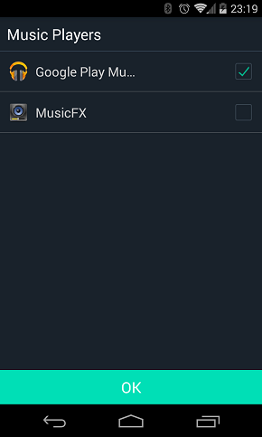 In de andere onderdelen kunnen we kiezen welke muziek applicatie wordt aangestuurd met de telefoon zodat de telefoon weet aan welke applicatie hij de opdrachten door moet geven…en het update tabblad spreekt voor zich.