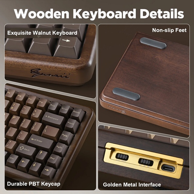 Yunzii heeft zijn assortiment uitgebreid met twee nieuwe toetsenborden met een opvallende houten behuizing, de Wood 68 en Wood 84. Beide modellen zijn gebouwd rond een frame van walnoothout en combineren een natuurlijke uitstraling met moderne functionaliteit, gericht op zowel liefhebbers van design als fanatieke gebruikers.